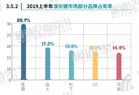 值得一提的是,在经历了连续多年的下滑之后,溴化锂市场在今年上半年却是以2.5%的增长率惊喜收官。从2012开始,荏原溴化锂已连续多年稳占溴化锂市场**,在2019年仍旧以****的姿态占据**头衔。