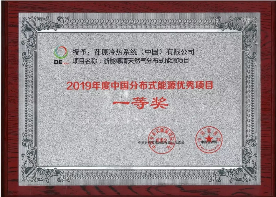 值得一提的是,荏原为浙能德清天然气分布式能源站提供集中供冷供热项目也榜上有名,被评选为2019中国分布式能源**项目奖:一等奖。
