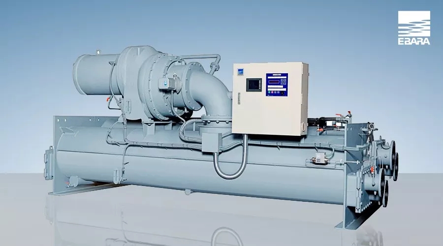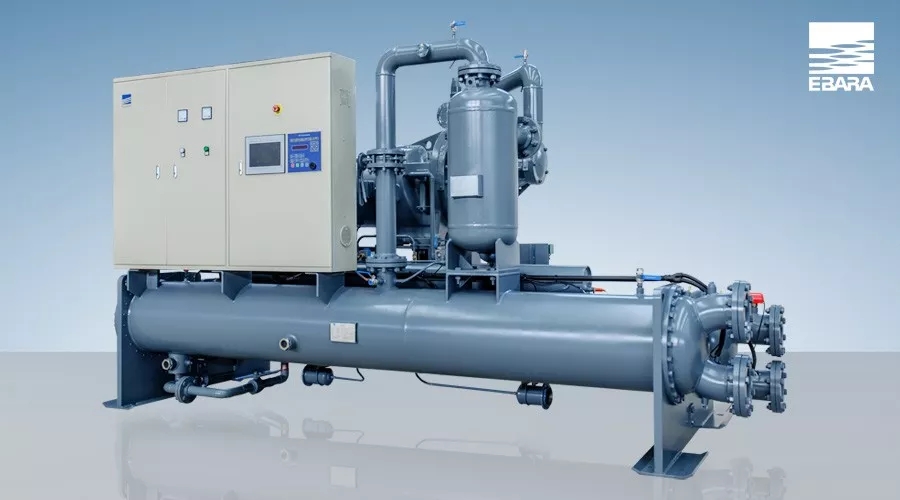 ●EBARA品牌高效螺杆式压缩机;高效全降膜式蒸发器,换热效率更高,更加稳定性。
