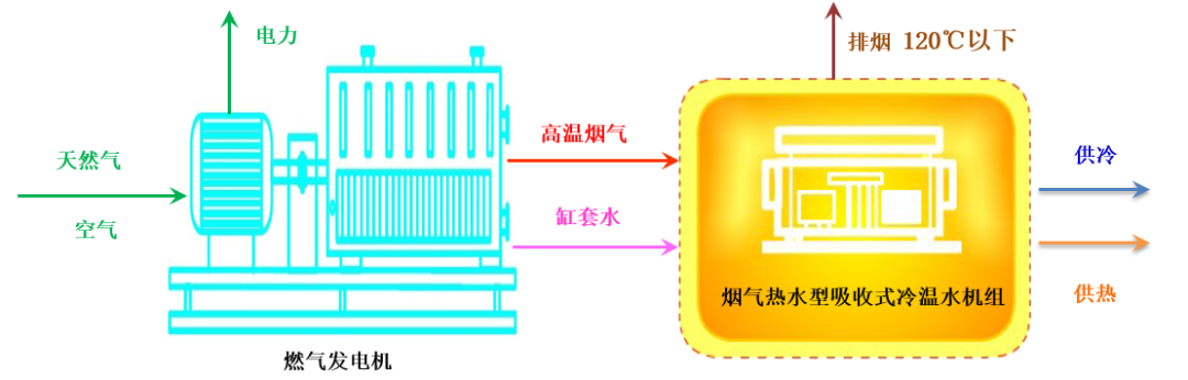 该机组以燃气内燃机、燃气轮机、工业窑炉排烟等装置排放的高温烟气及燃气内燃机的缸套水作为驱动热源,以溴化锂水溶液为吸收剂、水作为制冷剂,制取舒适性空调或工艺用冷水、热水的设备。可以大幅提高能源利用效率,减少有害气体和碳的排放,运行稳定可靠、配以智能控制装置,可适应年运行8000小时以上的工艺要求。