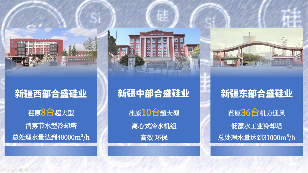 品牌选择品牌,高端认可高端,合盛硅业至今已经在新疆西部合盛硅业、新疆中部合盛硅业、新疆东部合盛硅业三大基地选择荏原的高端产品,产品涵盖高效离心机、大型消雾节水型冷却塔和低漂水工业冷却塔。荏原将用稳定的产品和先进的技术,助推合盛硅业扩大在硅基新材料全产业链的布局,为合盛光伏新能源业务快速发展护航。