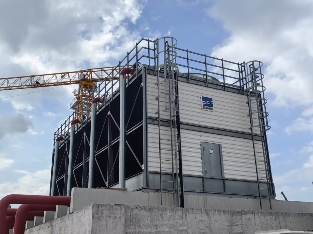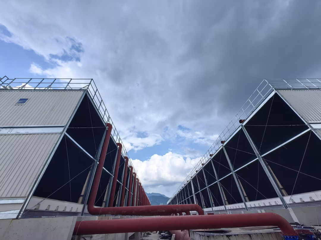 爱旭太阳能15GW高效晶硅太阳能电池项目上马时间紧、任务重,且现场空间受限,满足处理水量的常规冷却塔放置不下。荏原经过现场勘查、优化方案:采用50余台荏原冷却塔,以7*2、6*6等多种模块组合形式,既能合理利用空间又可满足冷却水量需求,保障了离心机组配套冷却水和空压机配套冷却水的稳定供给,每小时名义处理水量近50000立方米。