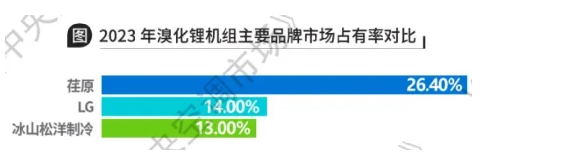 众所周知,溴化锂机组因其较高的技术门槛,品牌集中度一直较高。从品牌来看,荏原、LG、冰山松洋制冷等品牌占据市场优势地位。2023年,荏原以26.40%的占有率,稳坐溴化锂市场头把交椅,依托在“余热利用”领域的优势,凭借成熟的产品技术为青海丽豪半导体材料有限公司20万吨高纯晶硅光伏制造项目、浦发集团海滨资源再利用中心、ABB重庆两江新区变压器智能制造基地迁建项目等客户提供了有力支持。
