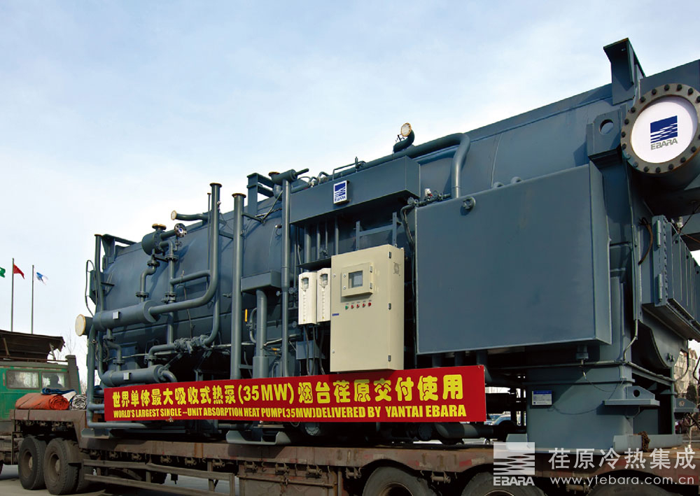 2011年,承德热电有限公司采用荏原8台超大型溴化锂吸收式热泵机组,单机最大制热能力达35MW。